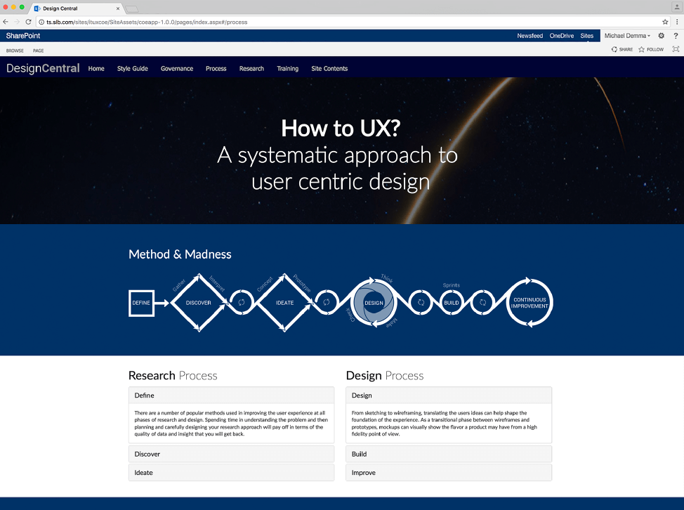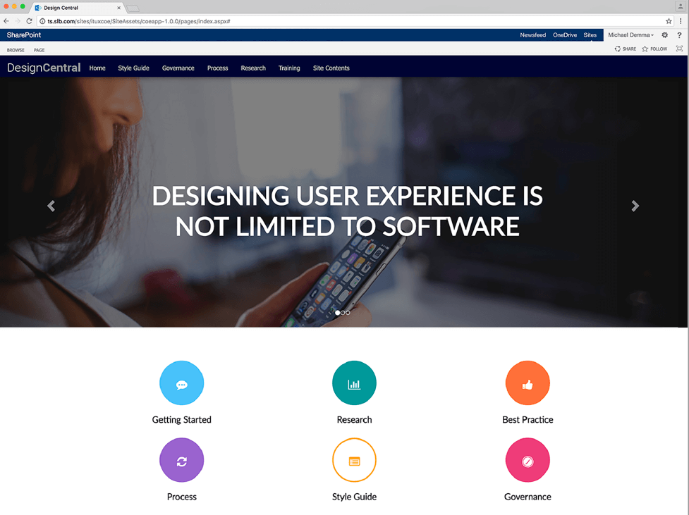 The CoE was a dedicated research and design team lead by a UX director. Driving the vision, the director marketed the team as consultants to the organizations UX needs.